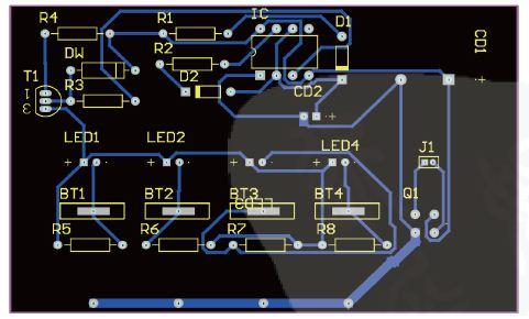 Protel 2004中布線時(shí)首先要設(shè)置好布線規(guī)則,以滿足安全原則等電氣要求。根據(jù)充電器電路的實(shí)際要求,這里設(shè)置安全間距為10mil,頂層布線、普通線寬10mil、電源線20mil、地線30mil.布線采用自動(dòng)布線,對(duì)不合乎要求的地方后可以進(jìn)行手工修改。布線時(shí)在滿足安全原則等電氣要求的前提下,導(dǎo)線要精簡,盡可能短,盡量少拐彎,力求導(dǎo)線簡單明了。