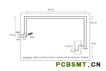 電路板中電子元器件和線路受電磁干擾(EMI)的可能性降低了679/12.8倍或約54倍