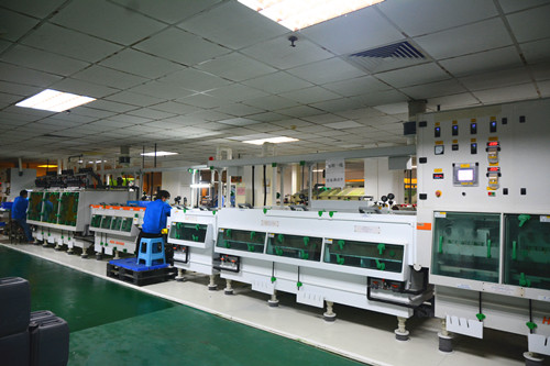 參訪團(tuán)后走訪了珠海鎮(zhèn)東有限公司。珠海鎮(zhèn)東成立于1999年1月1日,公司的核心產(chǎn)品是印制電路板制造用陶瓷刷輥、不織布刷輥、尼龍針?biāo)⑤仭⒒鹕交宜⑤?,另外還有光學(xué)級(jí)曝光玻璃、全系列各類刷板機(jī)系統(tǒng)(21刷/17刷/13刷/9刷/8刷/4刷/2刷/1刷<以及薄板、厚板>)、砂帶研磨機(jī)、銅粉過(guò)濾機(jī)、真空絲印機(jī)和匹配型塞孔油墨/樹(shù)脂等線路板制造用相關(guān)設(shè)備及物料, 并為廣大客戶提供真空絲印塞孔、研磨的代工服務(wù)。在珠海鎮(zhèn)東的生產(chǎn)車(chē)間內(nèi),各生產(chǎn)設(shè)備正在正常運(yùn)行,工人們有條不紊地調(diào)整著設(shè)備參數(shù)。據(jù)總經(jīng)理趙其平介紹,2016年開(kāi)工大吉,訂單量穩(wěn)中有升,今后將繼續(xù)提升企業(yè)的科研實(shí)力,以優(yōu)質(zhì)的產(chǎn)品服務(wù)客戶、為客戶創(chuàng)造價(jià)值。