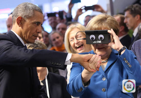 美和歐盟之間的貿(mào)易協(xié)議在不斷地增多, 而美總統(tǒng)奧巴馬和德總理默克爾在今天參觀了一年一度的漢諾威工業(yè)展。 兩位元首嘗試使用了被譽為“世界上小的3D相機”的虛擬現(xiàn)實頭顯。
