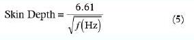在高頻段,必須考慮一種稱為“趨膚效應”的現(xiàn)象。趨膚效應會引起電流流向?qū)Ь€的外表面——結果會使得導線的橫截面變窄,因此使直流(DC)電阻增大。雖然趨膚效應超出了本文討論的范圍,這里還是給出銅線中趨膚深度(Skin Depth)的一個很好的近似公式(以cm為單位):